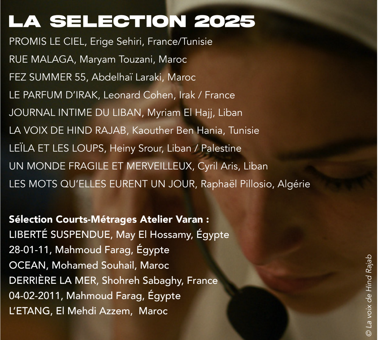 Da un filmu à l’altru, un stessu fremu parcorre st’edizione: quella di a lea trà e generazione, trà ciò chì si trasmetta è ciò chì si riceve, trà a mimoria è a brama di passà in là. In u filmu Promis le ciel di Erige Sehiri, hè una zitella chì mette sottu sopra u mondu di e parsone maiò, ramintendu chì porta ogni tandu a purezza a più forza prufonda di a verità. In u filmu Rue Malaga, Maryam Touzani filma l’appaciata debule trà una mamma è a figliola in una casa tangerina quand’ella azzinga l’ora a corsa è duve a vita, contru à ogni spiranza, torna à batte. Ghjè à u puntà di u ghjornu di l’indipendenza maruccana ch’ellu ci riporta u filmu Fez Summer 55 d’Abdelhaï Laraki: quand’ella diventa metafora d’un paese chì si sveglia, l’amicizia trà una zitelletta è un cinninu. È in u Parfum d’Irak, ci svultuleghjanu i fili d’una mimoria ferita, quella d’un zitellu franco iracchianu diventatu testimoniu d’una storia livata. In Beyrouth, Journal intime du Liban di Myriam El Hajj intricceghja u disincantu di l’anziani è u firvore d’una ghjuventù chì ricusa a sfacciatezza. La Voix de Hind Rajab di Kaouther Ben Hania ribomba tale un mughju in u fracassu di u mondu: quellu d’una zitella palestinesa colta à l’abbloccu di a guerra, imaghjina insustinibile di un’umanità chì si perde. Incù Leïla et les loups, ramenta Heiny Srour, ch’ella hè un zocculu d’una resistenza senza fine a mimoria di e donne. È ci invita Un monde fragile et merveilleux di Cyril Aris, à crede sempre à a purezza di a lea, à ciò chì ferma di zitellina in i nostri amori è i nostri sogni. Si rispondanu sti filmi, si parlanu, si schjariscenu l’unu à l’altru. Dicenu chì e generazione ùn anu altra scelta ch’è di custruisce inseme un mondu accettevule. Di pettu à l’addisperu, principalmente quellu chì ci inspira a tragedia di u populu palestinese è di u silenziu chì u circonda, diventa un rifugiu u sinemà, un soffiu, un spaziu duv’elli continueghjanu i zitelli à fighjulacci, è ci ghjudicheghjanu. Forse ch’ella hè a speranza: in issi sguardi zitelleschi chì ricusanu l’indifferenza, in isse voce nove chì s’alzanu, in ogni locu, per riclamà pace, ghjustizia è dignità. Ùn s’accuncianu micca sti filmi di cuntà: veghjanu. Ci ramentanu ch’ellu ferma sempre pussibile un mondu fragile è maravigliosu malgradu a viulenza di u mondu, nant’à a cundizione di cuntinuà inseme à guardà in faccia.