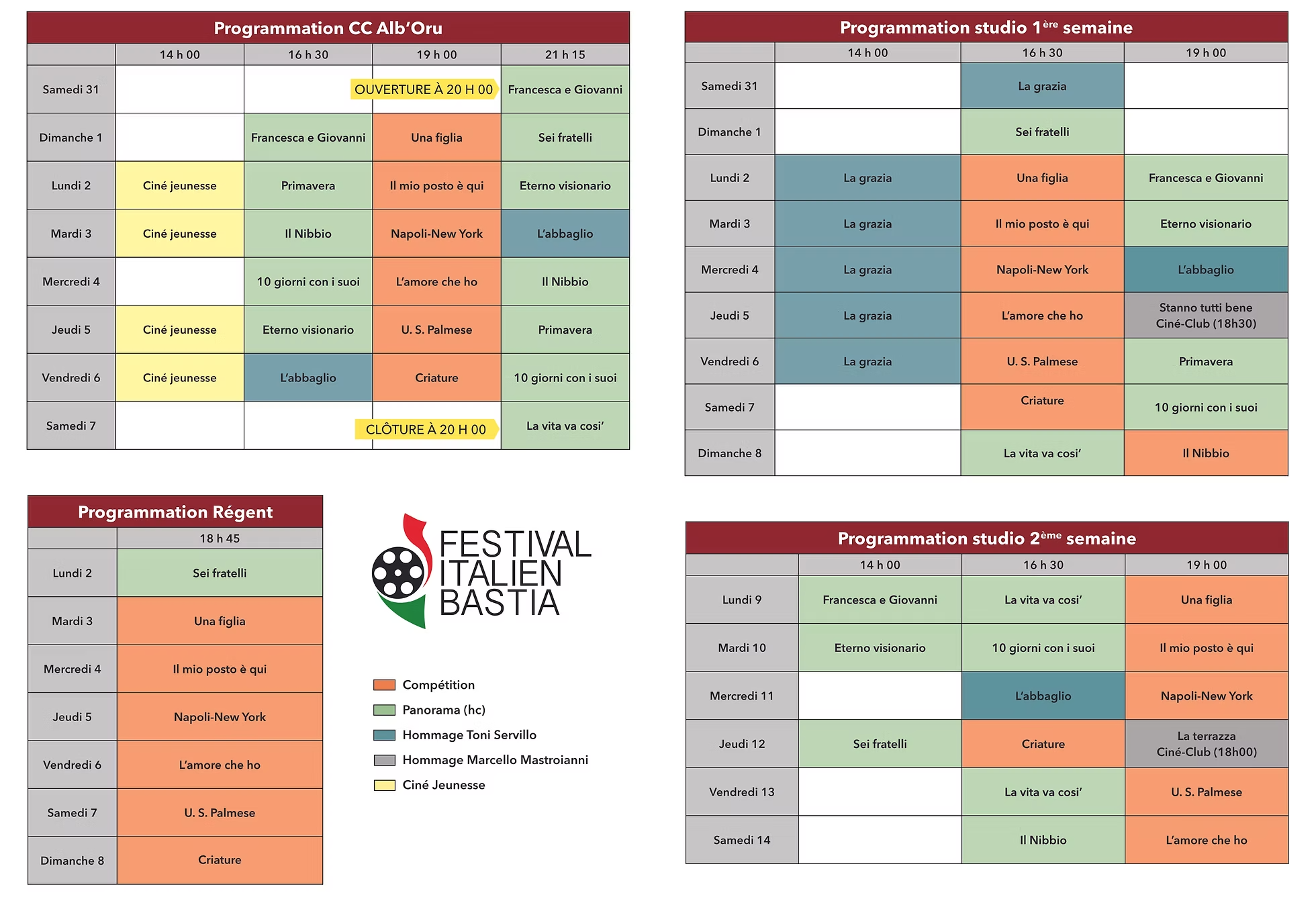 Du 31 Janvier au 15 Février 2026, les projections auront lieu à L'Alb'Oru, au Studio ainsi qu'au Régent à Bastia.