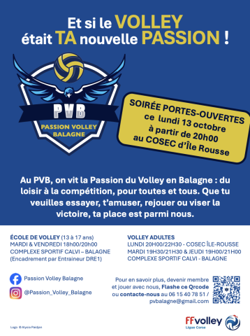 L'association Passion volley réalise une soirée portes ouvertes le lundi 13 octobre au Cosec de l'Île-Rousse.