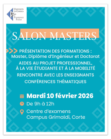 Une matinée sera consacrée à l’information des étudiants sur leurs choix d’orientation. L’Université de Corse Pasquale Paoli organise, de 9 h à 12 h, au centre d’examens du campus Grimaldi, des rencontres et des conférences visant à présenter les différents parcours d’études proposés. Au programme : la présentation de formations par la faculté de droit et de science politique, la faculté des lettres, langues, arts, sciences humaines et sociales, l’école de management ou d’économie, ainsi que l’Institut national supérieur du professorat et de l’éducation (INSPE). Plusieurs dispositifs d’aide à la construction de projets professionnels seront également présentés.