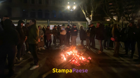 Après l'annonce du décès d'Yvan Colonna ce lundi soir, plusieurs personnes se sont rassemblés autour d'un feu devant le Palais de Justice de Bastia. On pouvait y voir des bougies, des bandera et des banderoles Statu Francese Assassinu.